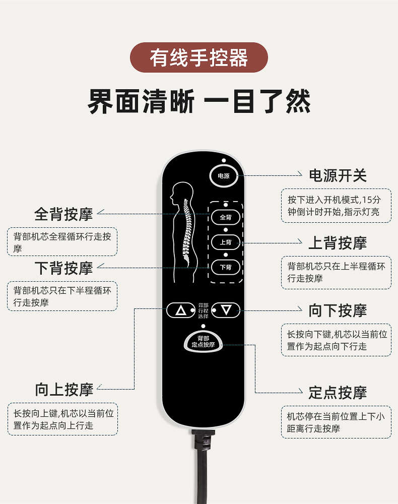 背部:上來來回按摩,有2組共4個按摩頭。