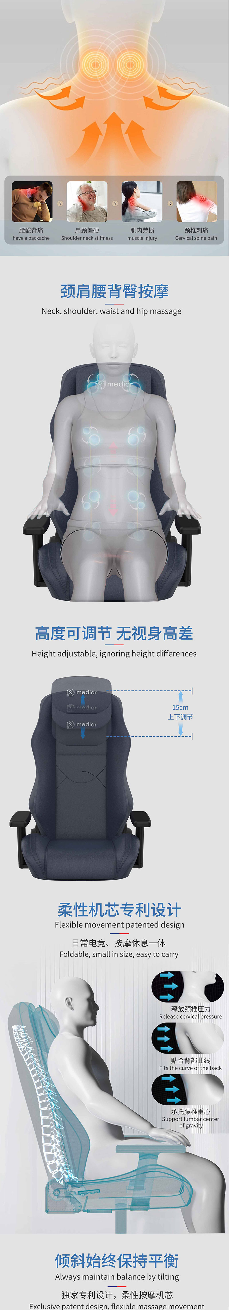 1) 頸部揉捏按摩,上下移動調(diào)節(jié)
