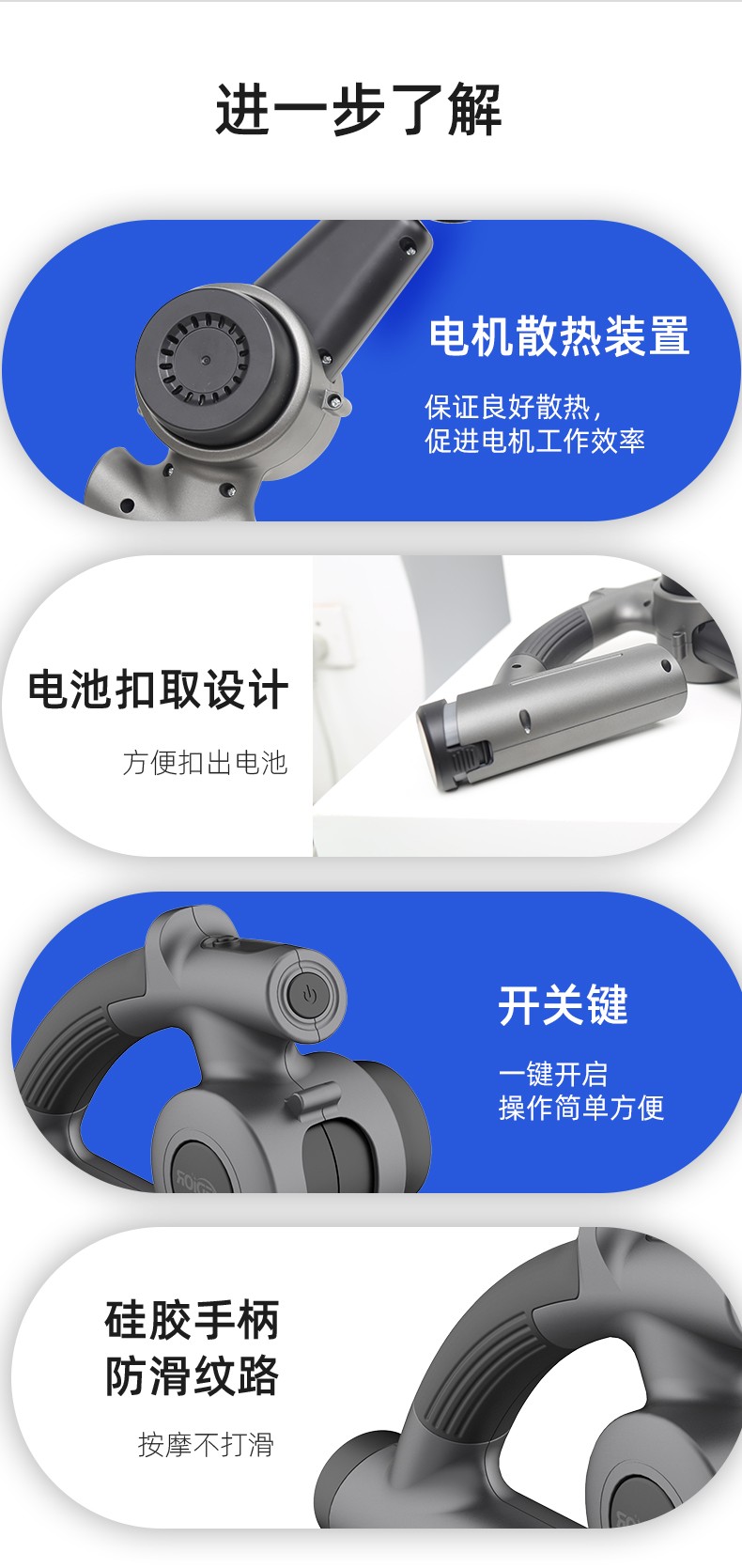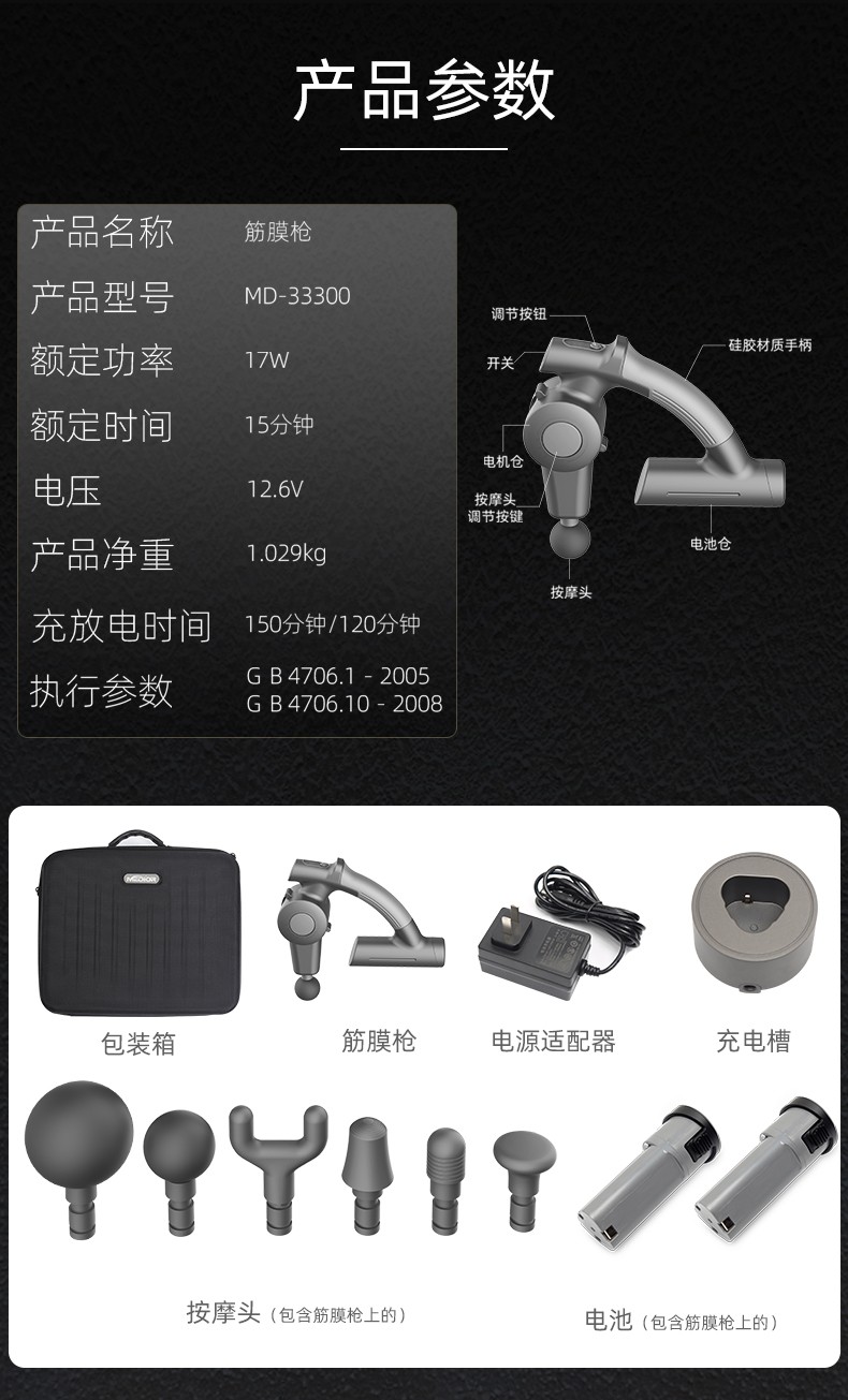 5個(gè)按摩頭和4個(gè)速度:每分鐘500-2500次