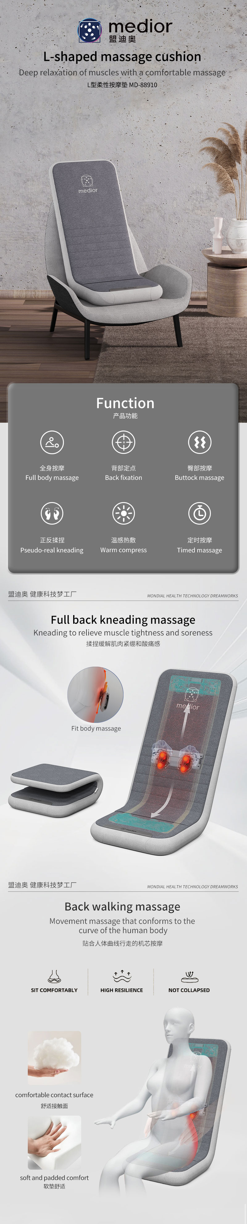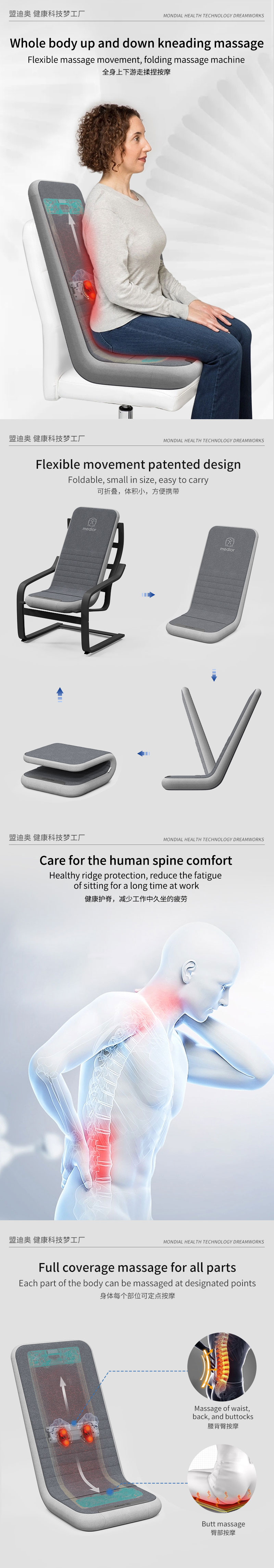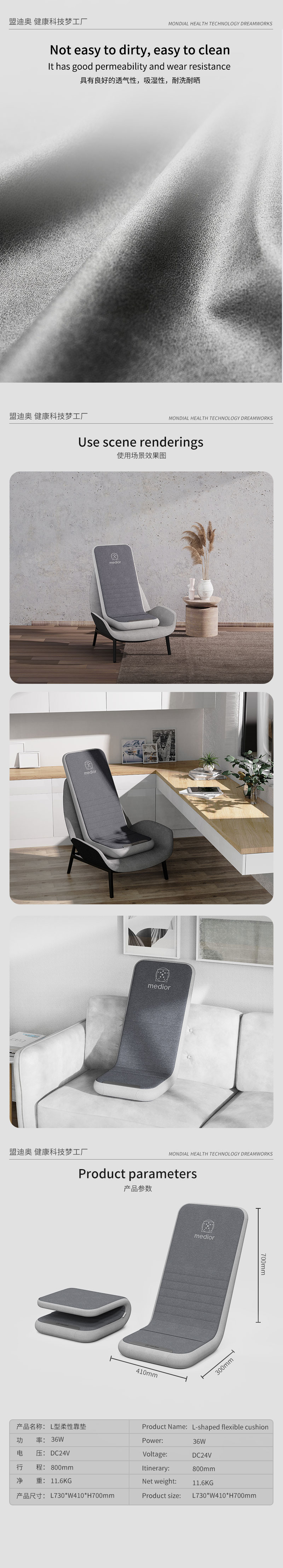 1、L型機芯結(jié)構(gòu),對折包裝縮小體積2、獨家專利柔性機芯3、力度三檔調(diào)節(jié),定點按摩,腰背按摩、臀腿按摩、全背按摩模式選擇4、背部行走揉捏,按摩區(qū)域加長到從肩膀到大腿;5、更加貼合不同款式的椅子整體可對折收納6、亞馬遜標準包裝尺寸